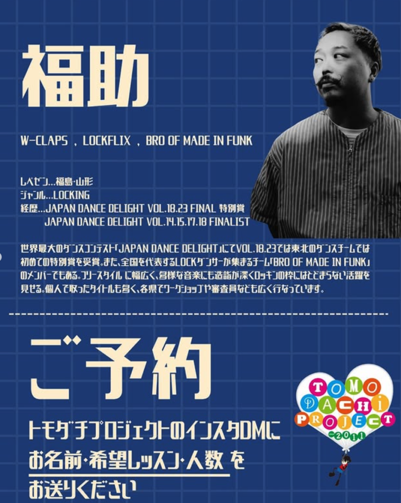 基礎から応用はもちろん、身体の動かし方や音の楽しみ方、ダンスの歴史まで、教えてくれて、福助さんのレッスンはダンスの楽しさと理解と興味を深く学ぶことが出来ます!